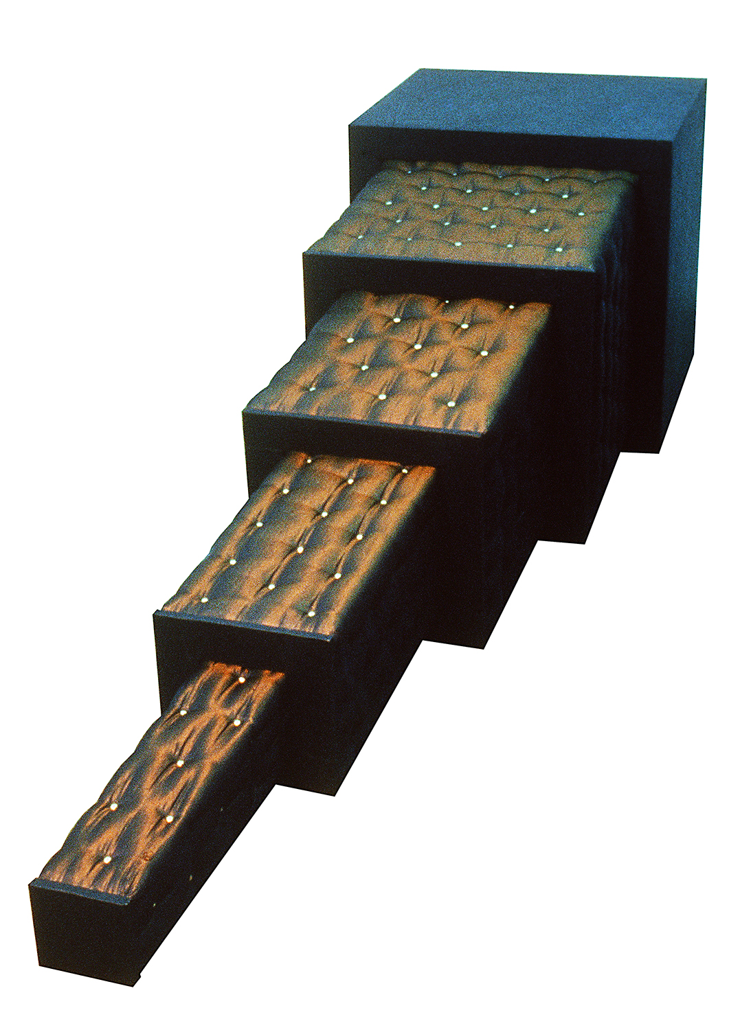 Cube 3, upholstered telescopic object, 40 x 40 x 40 cm - 40 x 40 x 150 cm, 1990