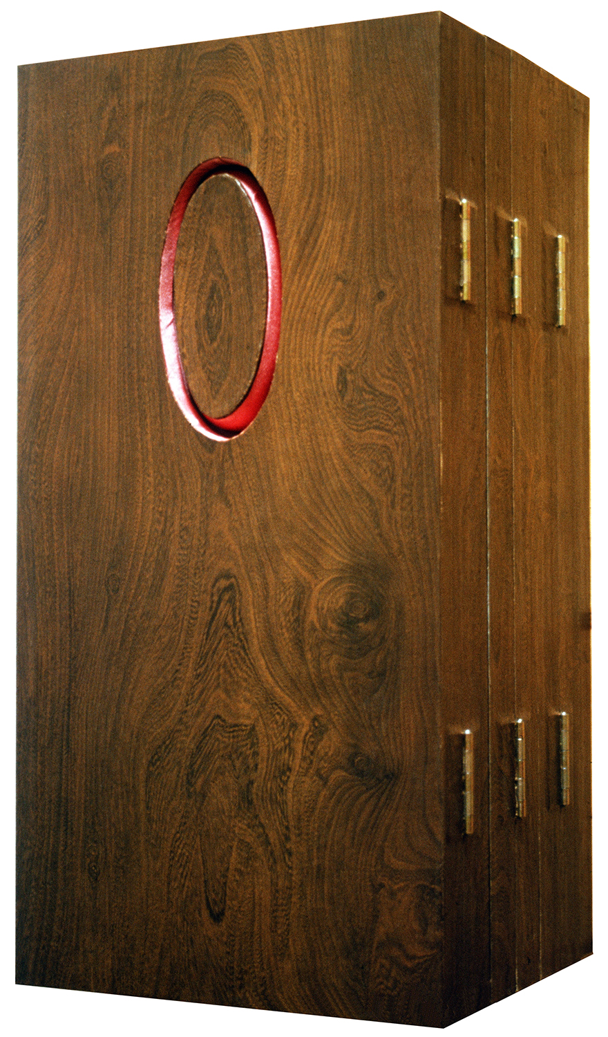 Cube 3, upholstered telescopic object, 40 x 40 x 40 cm - 40 x 40 x 150 cm, 1990