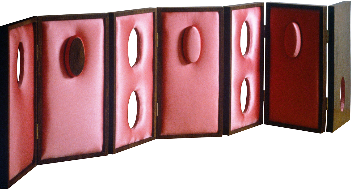 Cube 2, upholstered hinged object, 40 x 40 x 40 cm - 60 x 60 x 60 cm, 1990